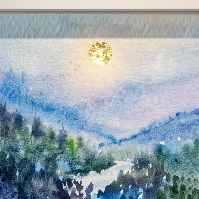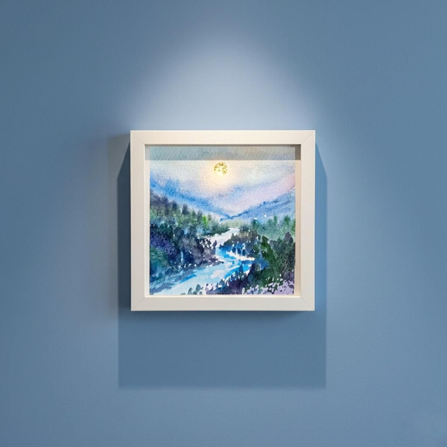 Elevate your space with this captivating 4x4 inch watercolour artwork by artist Maria Smith, beautifully gilded with genuine gold leaf for a luminous focal point.This unique piece is professionally framed and protected by high-quality Perspex.