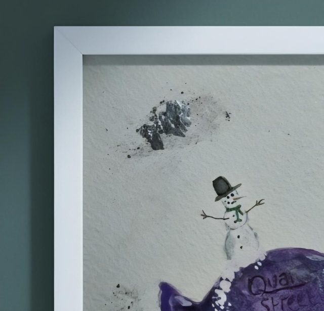 Elevate your space with this wonderfully witty 4x4 inch watercolour artwork by artist Maria Smith, capturing a moment of festive fun. It's delicately gilded with genuine silver leaf, adding a snowy, celebratory shimmer.This unique piece is professionally framed and protected by high-quality Perspex.