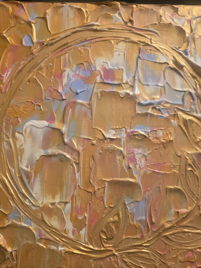 The shimmering gold highlights the canvas's tactile quality, representing the luminous spirit and inspiration I found upon returning to my practice. It is a meditation on the connection between the enduring earth and personal growth, perfect for bringing a sense of warmth and spiritual depth to any space.