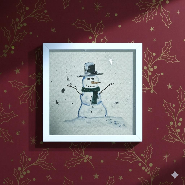 A charming snowman, with a knowing glance and welcoming arms, stands in a soft winter landscape. He embodies the warmth of memories, symbolizing loved ones who remain vivid in our hearts and pur no longer with us at christmas time. It's a quiet reminder to hold those dear memories close as the snowflakes fall and the festive spirit fills the air.