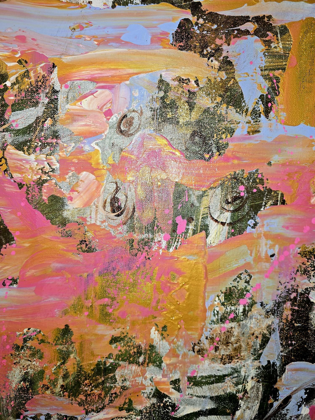 This stunning abstract artwork, "Winstone's Memories " by Maria Smith, is a vibrant, textural interpretation of a fleeting summer memory: the colorful, buttery chaos of a melting ice cream from Winstone's on a warm common. The piece translates the ephemeral joy of a sun-drenched day into a dynamic, energetic composition.